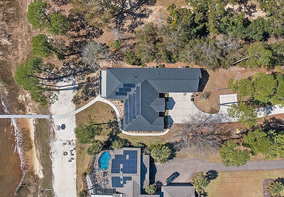Additional features: complete solar panel system; 10 foot ceilings; brand new roof; one year HEPA filters and fresh air exchange in A/C system; crown moldings and large wood trim; separate workshop; pier with boat lift, water, and electric service; gourmet kitchen with gas cooktop; cabinets galore; pump, well, and sprinkler system; back-up generator with auto-transfer; wi-fi thermostats; central vacuum system