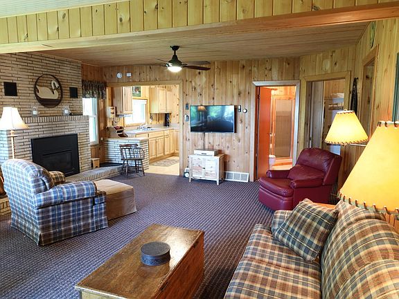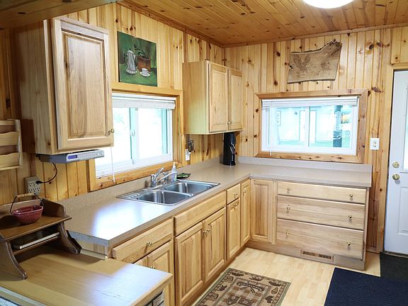 Magnificent views of Burnett County’s largest lake from this double sized lot - 200 feet of frontage and 2 acres! Year around 3BR cabin has been meticulously cared for, updated and improved by current owners, including new gutters and windows wrapped in aluminum for maintenance free exterior, the addition of 4-season room on the lakeside surrounded by windows and structurally enhancing and insulating the roof. Warm and welcoming interior - kitchen is open to the living room with gas log fireplace and classic brick surround. Brand new detached garage with design details to match the cabin is finished and insulated inside. Large level yard surrounding the cabin is great for yard games and is peppered with majestic pines – including one with an eagle’s nest! Large flat area at the lakeshore - enjoy boating and fishing adventures on the big lake, Little Yellow Lake and the Yellow River and stop at a bar/restaurant on the lake to cap it off!