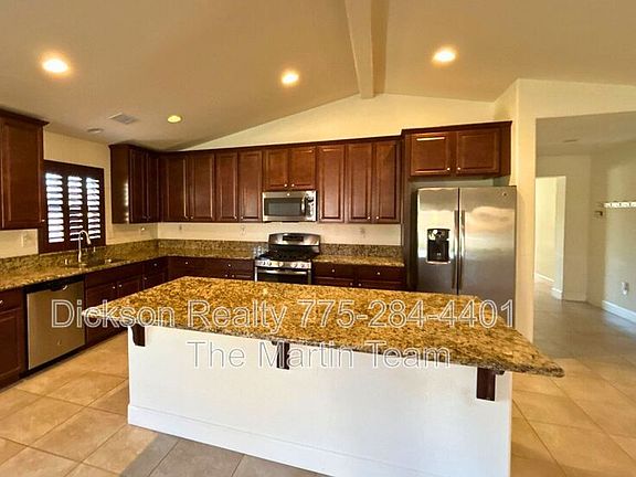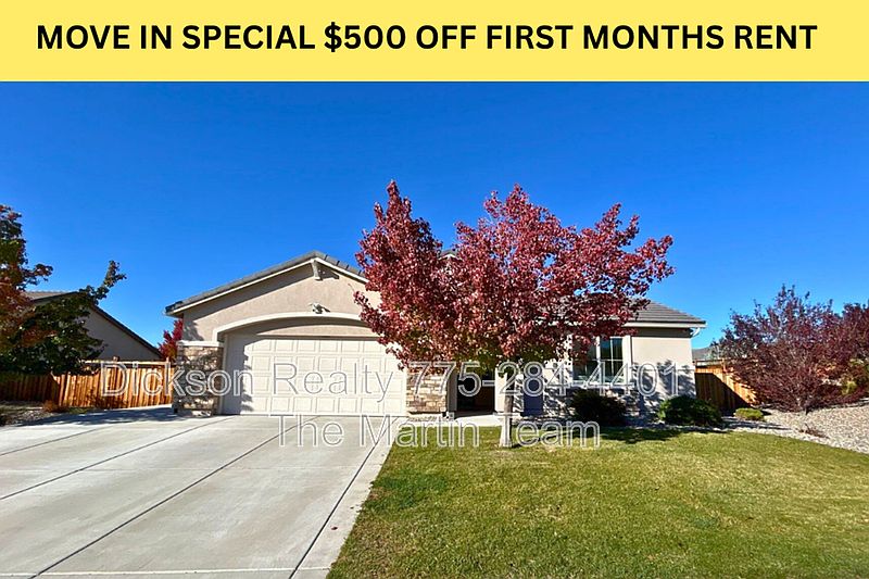 AVAILABLE NOW! MOVE IN SPECIAL: $500 OFF OF FIRST MONTH'S RENT!! Wonderfully maintained 4-bedroom, 2-bathroom home in Sparks! The kitchen features a large center island, ample cabinet space, and a refrigerator for tenant use, opening to a spacious living room with vaulted ceilings, a ceiling fan, and sliding doors that lead to a serene, landscaped backyard with water features and a large covered patio. The primary bedroom also offers patio access, a generous layout, and an attached bath with double sinks, a garden tub, a spacious walk-in shower, and a window that fills the room with natural light. Each of the additional three bedrooms is well-sizedperfect for guests, home offices, or secondary bedroomsand all include ceiling fans with remote controls and blackout window coverings for added comfort. The second full bathroom offers double sinks, ample cabinet space, and a shower/tub combo. A separate laundry room with a washer, dryer, and shelving adds convenience, while a 3-car tandem garage provides plenty of parking and storage. Small dogs are considered with owner approval. Conveniently located near parks, schools, shopping, and everyday essentialsthis home won't last long, so schedule your tour today!