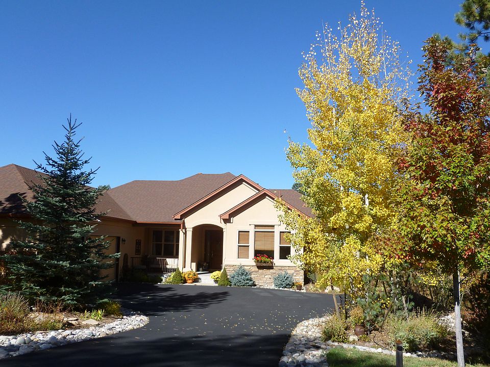 This stunning custom ranch home backs up to open space with gorgeous views in all directions. Located in the prestigious Hidden Forest, this home is filled with upgrades such as hand trowel texture walls, knotty alder wood throughout entire home, custom ceiling beams, crown molding and much more. An entertainer’s dream with 3 outdoor entertaining areas and an open floor plan. Enjoy cooking in the over-sized dream kitchen with slab granite, gas cooktop, double oven with convection, cherry cabinets, walk-in pantry, beautiful hardwood floors & a breakfast nook with views of open space with daily wildlife visits. A finished walkout complete with a 10 foot ceiling family room that includes a beautiful slate stone fireplace and rec room. Bedrooms with walk-in closets and their own bathrooms add to the richness of this home. A fully finished over-sized 3 car garage with plenty of storage space completes this package. Minutes to I-25, downtown Castle Rock, Bear Dance GC, & Colorado Springs. This is a MUST SEE!