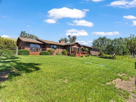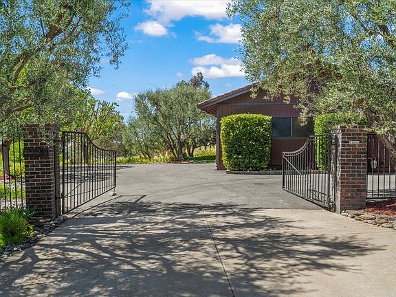 This single story custom home is tucked at the base of the beautiful green hills with views in many directions. The home has a gated entry & the site affords a great deal of privacy, serenity & convenience. In the country but on natural gas & a private water company. A fenced yard with waterfall is surrounded by more land providing the potential for horses, a barn, workshop or ADU. Double side gates & an 220V, 30 AMP outlet for various uses. Updated interior with new paint, lighting, carpet & LVP. Formal living room with fireplace, dining room & warm family room with fireplace. The kitchen features a stainless French door refrigerator, dishwasher & ovens. The kitchen skylight highlights a gas cooktop, breakfast bar, casual dining area & adjoining walk in pantry. The primary suite with cathedral ceiling & private deck showcases the valley views, double closet & steam shower. Spacious secondary bedrooms. 3 car garage w/ ample parking area. Propane generator & central vacuum.