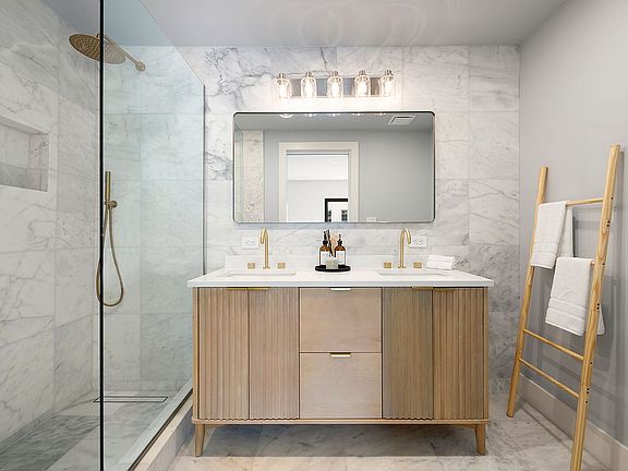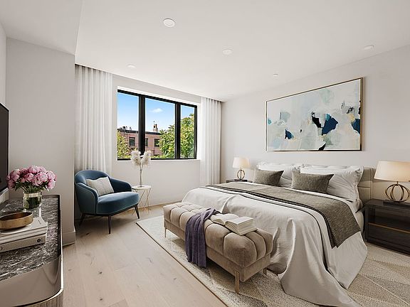 Throughout the residence, thoughtful design meets modern convenience, with multi-zone central AC, sustainable white oak flooring, energy-efficient windows, and an in-unit Miele washer/dryer. The chef's kitchen is as functional as it is elegant, featuring custom cabinetry, marble countertops, smart storage solutions, a wine refrigerator, and integrated Bertazzoni appliances. A state-of-the-art video intercom system adds an extra layer of security and ease. Residence No. 3 also includes a private basement storage room.