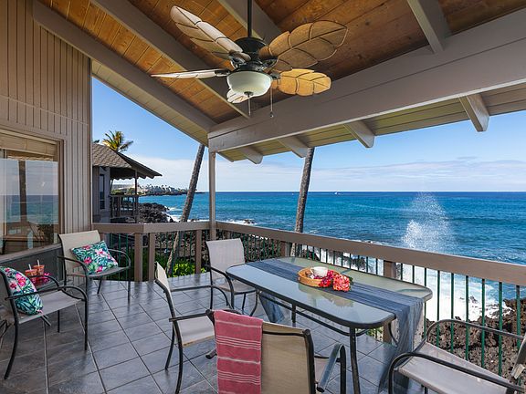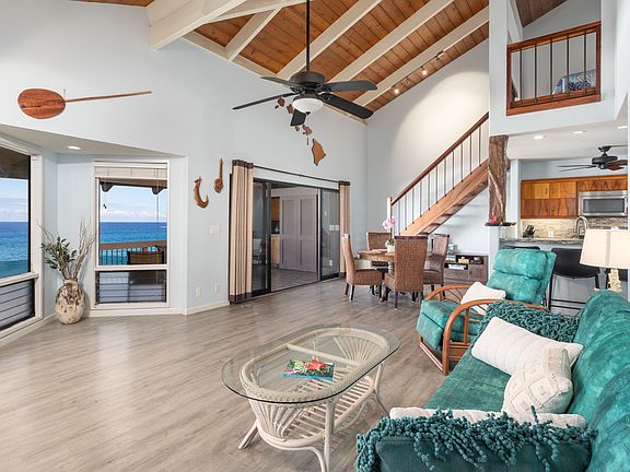 Discover premier oceanfront living in this spacious 3-bedroom, 2-bath residence—the largest floor plan in the prestigious Kanaloa at Kona community. Designed with soaring open-beam ceilings and a thoughtfully crafted layout, this home combines the comfort of a private residence with the convenience of resort-style amenities.<br> The well-appointed kitchen showcases granite countertops, koa wood cabinetry, and quality appliances—ideal for both everyday living and entertaining.<br>Step onto the expansive lanai and take in dramatic, unobstructed ocean views, where brilliant sunsets and seasonal whale sightings create an ever-changing backdrop of natural beauty. Central air conditioning, ample storage, and tasteful furnishings ensure comfort and ease in every detail.<br>Offered turnkey, this property is not only a serene private escape but also an established vacation rental with excellent income potential.<br><br>Kanaloa at Kona is celebrated as Kailua-Kona’s finest condo property, set on 17 park-like acres of meticulously maintained grounds. Its small, charming buildings evoke the essence of a Hawaiian village and are surrounded by the Pacific Ocean, He’eia Bay, and the lush Kona Country Club golf course. This tranquil retreat is just moments from Keauhou Bay, Kahaluu Beach Park, Magic Sands Beach Park, and the dining and shopping options at Keauhou Shopping Center.<br>Resort-style amenities include:<br>-Three swimming pools with Jacuzzis<br>-Two lighted tennis/pickleball courts<br>-Outdoor gas BBQ grills<br>-Guest Services Desk.<br>-Covered parking spot and an attached storage closet.<br>-Guarded, gated entry ensures a private, resort-style atmosphere.<br>Your Hawaiian paradise awaits!