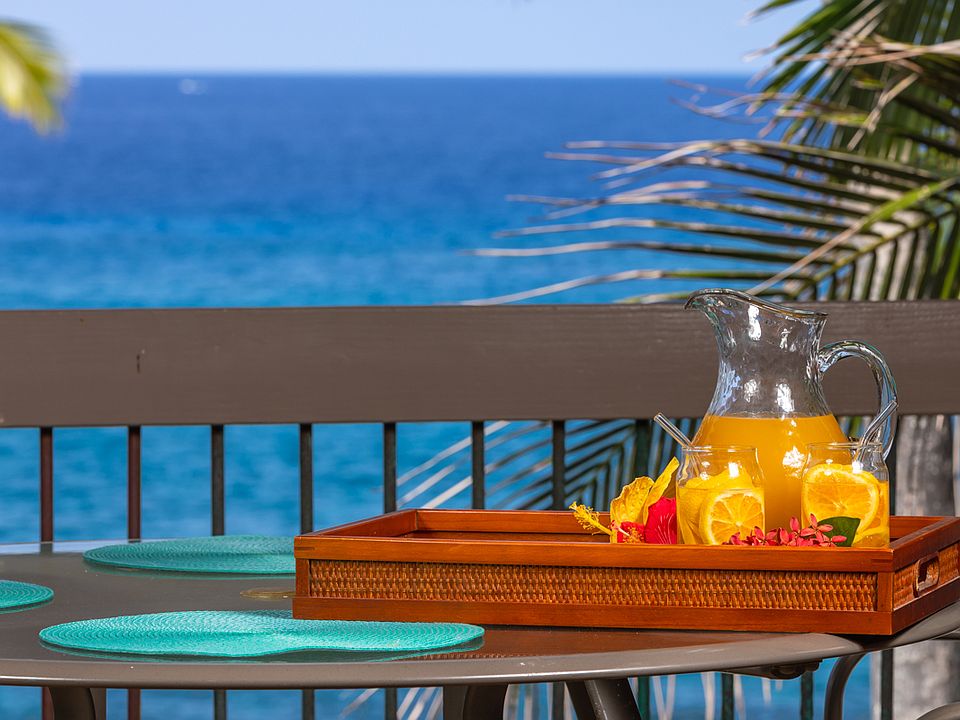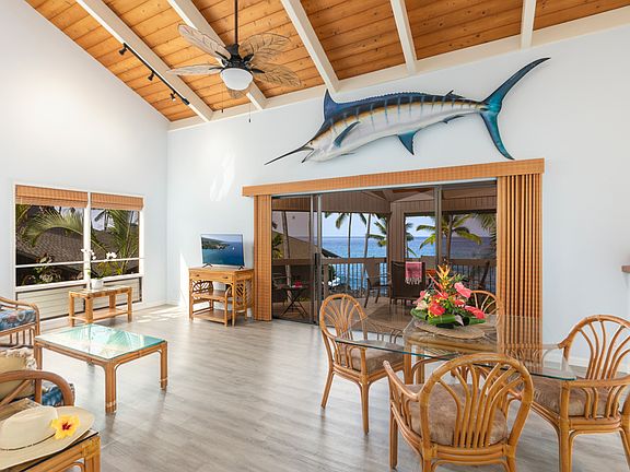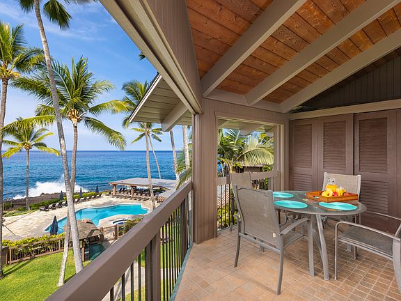 Discover the best of oceanfront living at Kanaloa at Kona.This beautifully updated 2-bedroom, 2-bath condominium captures the essence of island life with beautiful views of the oceanfront pool and the Pacific beyond. With three (!) private lanais, soaring open-beam ceilings, and a generous floor plan, it offers the comfort and feel of a private home.<br>The kitchen is a true centerpiece, featuring distinctive artistic countertops with a flowing lava-inspired design, classic koa wood cabinetry and a cozy breakfast nook where you can enjoy morning coffee with an ocean view. The primary suite is a serene retreat, complete with its own lanai and sweeping ocean views. Both bathrooms feature dual sinks and have been refreshed with artistic countertops that enhance the home’s unique character. Central air conditioning, generous storage, and tasteful furnishings add to the overall convenience and appeal.<br>Offered turnkey and currently operating as a successful vacation rental, this property is ready for continued income potential or to be enjoyed as a private island home.<br><br>Kanaloa at Kona is celebrated as Kailua-Kona’s finest condo property, set on 17 park-like acres of meticulously maintained grounds. Its small, charming buildings evoke the essence of a Hawaiian village and are surrounded by the Pacific Ocean, He’eia Bay, and the lush Kona Country Club golf course. This tranquil retreat is just moments from Keauhou Bay, Kahaluu Beach Park, Magic Sands Beach Park, and the dining and shopping options at Keauhou Shopping Center.<br>Resort-style amenities include:<br>-Three swimming pools with Jacuzzis<br>-Two lighted tennis/pickleball courts<br>-Outdoor gas BBQ grills<br>-Guest Services Desk.<br>-Covered parking spot and an attached storage closet.<br>-Guarded, gated entry ensures a private, resort-style atmosphere.<br>Your Hawaiian paradise awaits!