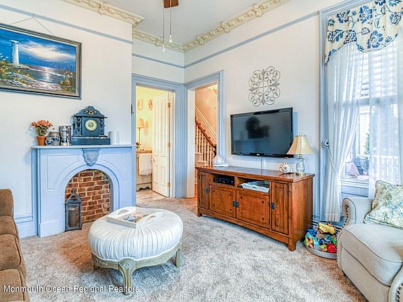 Fabulously Restored 1867 Victorian within walking distance to waterfront, downtown, restaurants, stores and Bars. Gorgeous Gardens frame this beauty and have landed this home on the Keyport Garden tour many years over. The open front porch with Retractable Sun Screen and ceiling fan invites you in to relax at the end of the day. You will find that this home brings History and Innovation to life. Many of the notable historic features that still remain in the home include 5 Fireplaces (not currently in use) 12' Ceilings on the first floor adorned by the original crown moldings, original ceramic door knobs and stunning stained glass windows. Combine these wonderful Historic Features that you won't find in new construction with 50 year roof (2004), ductless AC and Nevian High efficiency Heat.