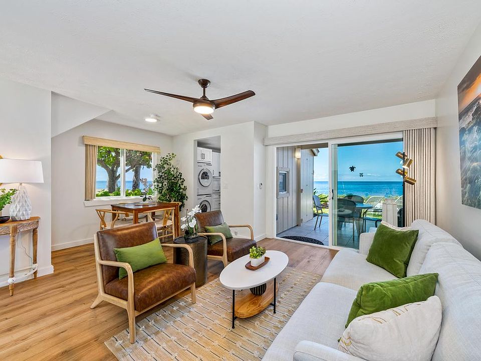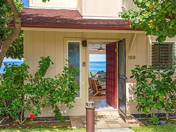ACTIVE STVR - OCEANFRONT AT IT’S BEST!<br>Unit #188 is an ideally situated end unit, offering extra privacy and a sense of seclusion with mature trees that offer abundant shade, creating a cool, relaxing outdoor space perfect for enjoying the natural surroundings. Step into this light-filled, updated oceanfront condo, where contemporary design meets breathtaking ocean views. The open-concept layout enhances the spacious feel, the recent remodel brings a fresh, modern aesthetic to every corner. The kitchen features newer appliances and a convenient pass-through window. Engineered wood floors flow seamlessly throughout the living spaces, adding warmth and style. Two Spacious bedrooms are located on the upper level, providing privacy from the main living area. The upstairs bathroom is conveniently located between the two bedrooms, perfect for shared use. Step outside to the oceanfront lanai, where you can enjoy your morning coffee or evening sunsets, enveloped by the sounds of the waves. <br>Notable Features:<br>Luxury Vinyl Plank Flooring: Enjoy the modern appeal of LVP flooring through every room, adding a stylish look to the space.<br>Custom Window Treatments: The property is adorned with custom window treatments, offering both privacy and a touch of elegance .<br>Proximity to Pool, BBQ, Clubhouse, Tennis are just steps away from your front door. Convenient parking-right outside the front door! <br>Abundant Storage: With tons of storage, you'll have plenty of space to keep your beach toys organized and out of sight.<br>Hawaii Breezes: Positioned to capture refreshing breezes, to provides a naturally cool and comfortable environment<br>With easy parking and access to great amenities, this condo provides the perfect blend of convenience, luxury, and coastal charm. Whether you’re seeking a peaceful getaway or a full-time residence, this oceanfront gem is ready to welcome you home.<br><br>Close to great shopping, restaurants, golf, and the Keauhou movie theater.
