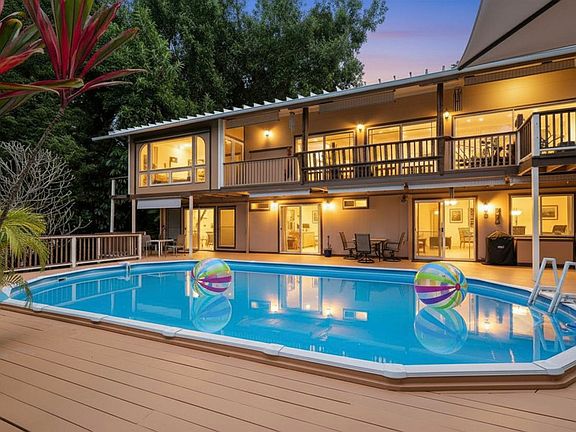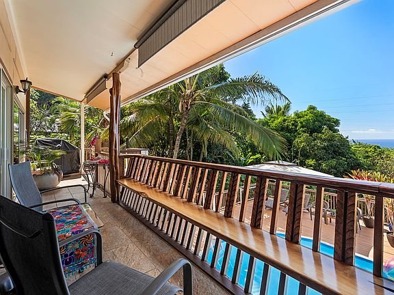 The main 3 bedroom, 2 bath home sits on a tropical oasis. Attention to detail shines throughout, including custom carved bannisters on front and back lanais. The home is being sold furnished.*