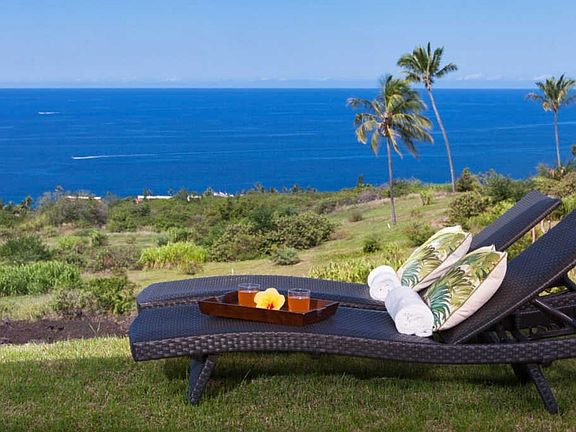 Located within the crown lands of Keauhou in a luxury condominium complex is the Villas at Keauhou Estates â a highly desirable, low density, gated complex of 58 units on approximately 15 lushly landscaped acres. This particular Villa has some of the most commanding ocean views within the community! This stellar Villa offers the following notable features and benefits:* 3 large bedrooms and 2 full baths* Phenomenal ocean views from nearly every room* Etched glass entry* Wood-coffered ceilings* Built-in sound throughout, including on the lanai* Sumptuous marble flooring* Spacious, single-level, open floor plan* High-end stainless steel appliances featuring major name brands like SubZero, Dacor, Wolf and Viking, plus a large wine cooler* Outdoor refrigerator on the lanai with wet bar* Office niche with ample cabinetry* Remarkable sunset views* Turnkey furnished with stylish furnishings* Brand new, tropical-inspired ceiling fans with light kits* Skylights for lots of natural light* Cathedral ceilings* Massive louvered windows throughout the great room = additional ventilation and increased airflow* Central air conditioning* Tinted windows* Two-car garage with new epoxy flooring and extra storage* Amenities include a swimming pool with a view, a hot tub, recreation area with BBQ and a tennis courtConveniently located near Keauhou Bay, Kahaluu Beach and White Sands Beach, the Kona Country Club Golf Course, Holua Tennis Courts and the Keauhou Shopping Center.Maintenance fees include insurance on the building, maintenance of the building exterior, gated community with private entrance, site manager, water consumption, private sewer, weekly refuse removal, interior and exterior pest control, maintenance of the common areas including the pool, spa, landscaping and tennis courts. The Villas are technically condos (that live like residences). Lock and leave with peace of mind!