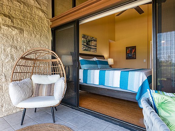 Golf course living with sunset ocean views at Keauhou Punahele! This recently remodeled 3-bedroom, 3-bathroom condo offers the perfect combination of rental income potential with an active STVR permit and a personal vacation home in Kona. Enjoy the golf course and ocean views from your expansive lanai which runs the width of the condo. The thoughtfully designed layout features a beautiful view from the primary bedroom with en suite bathroom and vaulted ceilings with the second bedroom and bathroom across the hall. Both bathrooms on the main level showcase unique custom stonework that add distinctive character. A private loft bedroom with a convenient bathroom and shower provides additional living or work space, while the generous storage area is large enough to accommodate another bed—perfect for larger groups or families.