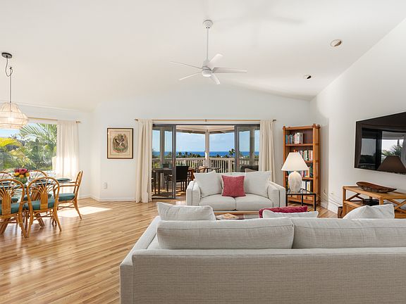 Discover the beauty of Hawaiian living in this beautiful top-floor corner condo located in the heart of Keauhou Resort at Kaulana at Kona. With awesome Pacific Ocean views and vaulted ceilings in the living room and main bedroom this home offers space and tranquility. Freshly painted walls enhance the bright, airy ambiance, while the open floor plan allows for effortless entertaining. The covered entry lanai provides easy and close-up access from the carport to the front door, with ample space to set down groceries. The galley kitchen with a brand-new stove recently added and center island allows you to prepare meals while staying connected with family and friends. This condo offers ample storage, including multiple closets and a separate laundry room. The primary bedroom features mesmerizing ocean views, two spacious walk-in closets and en-suite bathroom. On the opposite side of the condo, the generously sized guest bedroom with its own full bathroom provides privacy. Windows on 3 sides allow ocean breezes and mountain air to flow through the unit, often making use of the brand-new central A/C system optional.