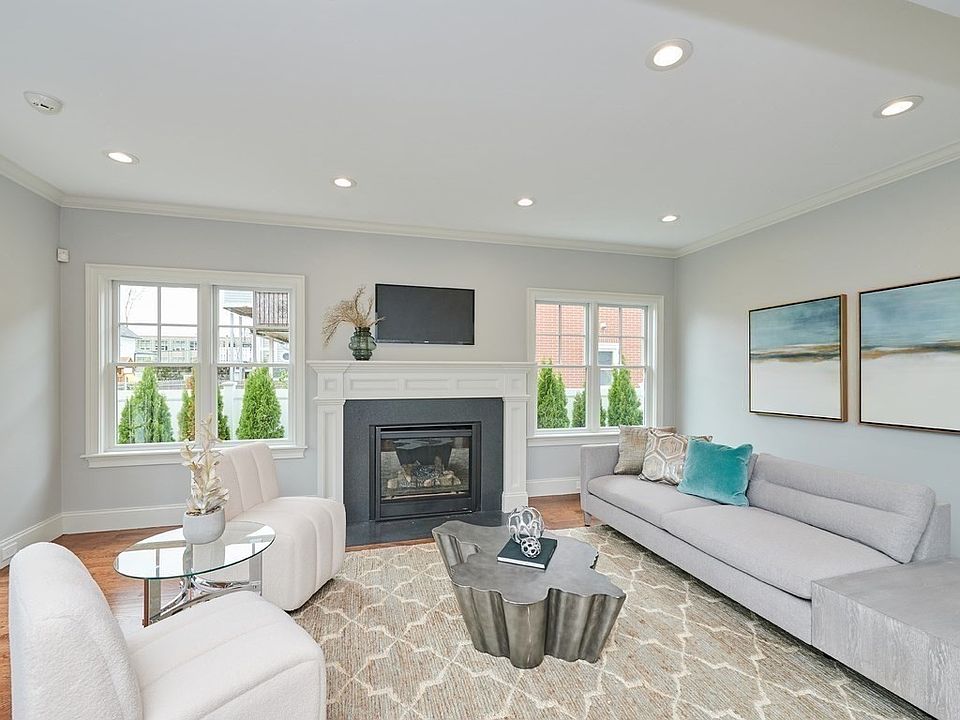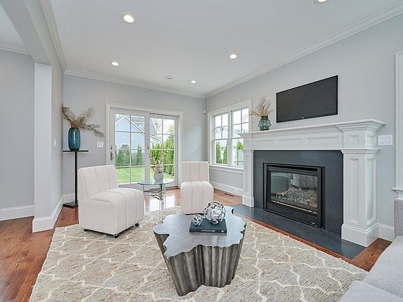 Beautiful setting overlooking Waban Park. This new construction home w/sophisticated design has an open layout, high ceilings, hardwood floors, crown moldings, gas FP. Living & Dining areas provide direct access to a private Patio w/gas line connection & a wonderful level fenced-in Back Yard, which allows for easy indoor/outdoor entertaining. Heart of this home is a fabulous kitchen w/oversized island, quartz countertops, plentiful cabinetry, MIELE 6 burner Range, Dishwasher & Refrigerator. There is a Convention Microwave, & Wine Cooler. In addition to 4 Bedrooms & 3 Baths on the 2nd level, including lavish Primary Suite, there is a 1st floor Bedroom Suite w/Full Bathroom & separate Powder Room. The multipurpose lower level includes Family Room, Playroom, 6th Bedroom & Full Bath. Attached heated garage has an EV charger. Located on a park-like street in a beautiful area w/easy commute to Boston, Cambridge, major roads, commuter rail, restaurants, Whole Foods, Trader Joe's, & more!