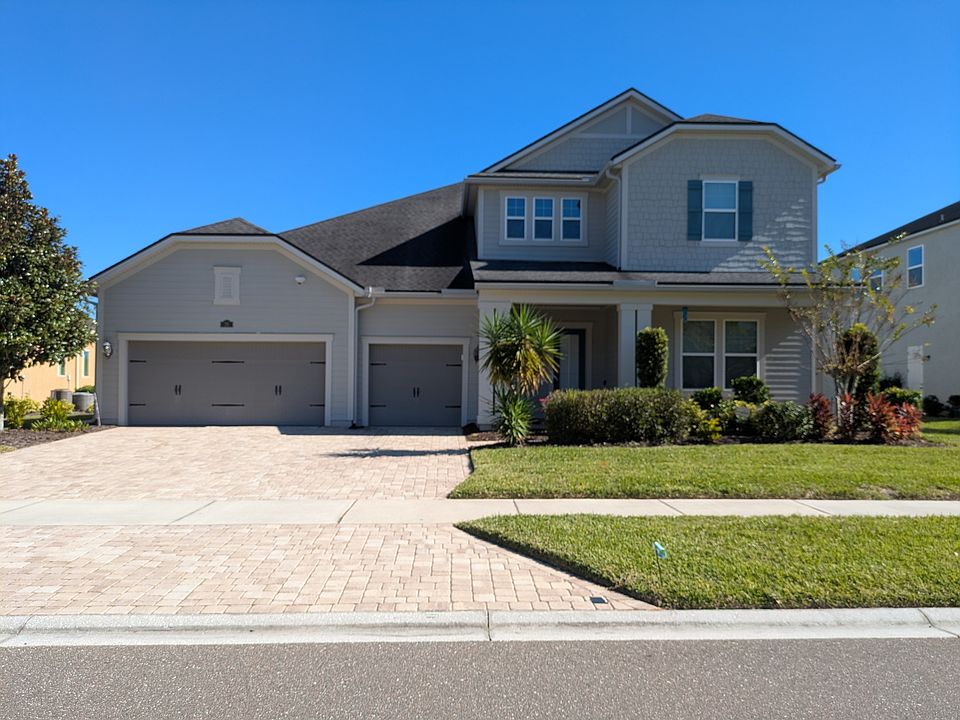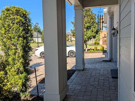 Beautifully maintained home in the gated Celestina community featuring all solid-surface flooring throughout. The primary suite is downstairs with an oversized soaking tub and walk-in closet. Upstairs offers a versatile flex room plus two additional bedrooms and two full baths. Enjoy peaceful pond views from the covered patio with extended paver area. Residents have access to resort-style amenities including a clubhouse, pool, fitness center, tennis courts, and playground. Convenient to A-rated schools, shopping, and dining.