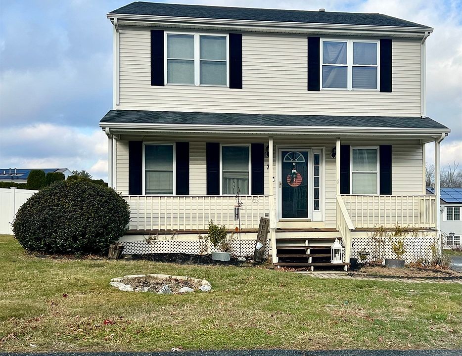 Welcome Home! This 3 bedroom, 1.5 bath Colonial with farmer's porch sits on a corner lot on Apple Creek Lane in the north end of Fall River. The first floor has an open and inviting floor plan with an updated kitchen that overlooks the dining and living areas. Perfect for entertaining! The kitchen has white shaker cabinetry, granite countertops, stainless steel appliances, and a spacious island. There's also a convenient half bath for guests, extra large coat closet, and sliders out to the back deck and fully fenced-in backyard. The second floor has 3 generously sized bedrooms and a full bath. There's plenty of storage with large closets in all of the bedrooms and both baths! The partially finished basement offers room for additional living space, gaming, home office, or gym. This home has gas heat and Central Air. Roof is new in 2017. All kitchen appliances, washer & dryer to stay. Apple Creek Lane is a quiet cul-de-sac, yet just minutes to the highway and all the city has to offer!