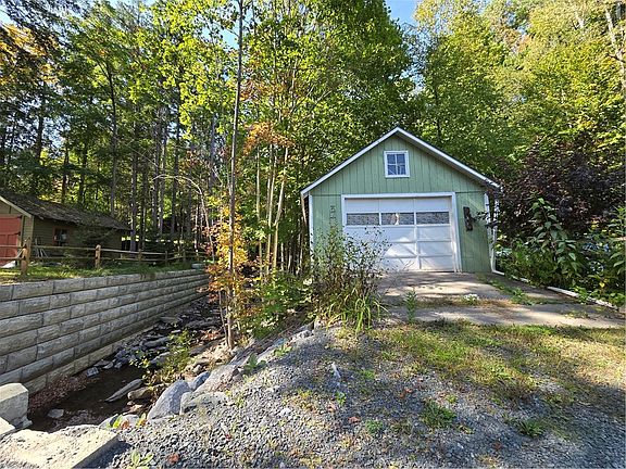 Price Reduced as a foundation issue identified in one corner. Property is being offered AS IS. My Blue Heaven! A hidden gem nestled at the end of a quiet lane in sophisticated Margaretville and connected to all Village services. The charming 2 bd cottage needs your touch to bring it to life. The secluded and conveniently located oversized parcel abuts Bull Run stream yet is not in the flood zone. The property boasts a one car garage which could house a studio. The parcel is a tad more than a half acre lot nestled in a parklike setting with many perennial plantings