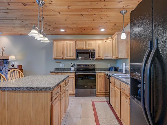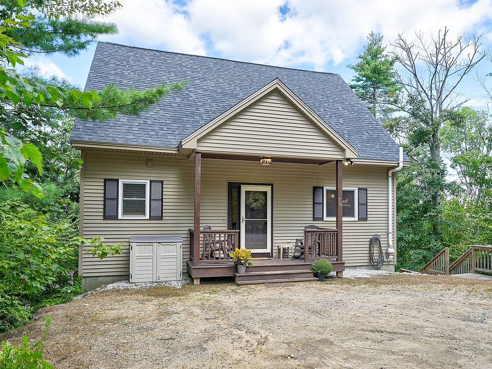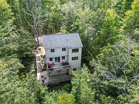 Welcome to this beautifully maintained 3 bedroom+ bonus space Cranmore Shores home! Entering from the covered front porch, a lovely spot to enjoy morning coffee, step into the bright main living space with warm wood-paneled ceilings. Open-concept, the kitchen and living room combine to create a spacious area to relax by the glow of the LP fireplace, enjoy meals or entertaining with family and friends. Take in the tree top vistas from the sliding doors leading out to the large, elevated back deck. Also included on this level are the dining space with elevated ceilings and bright windows, a ¾ bath, plus a convenient built-in desk for homework or working from home. Upstairs you’ll find the 3 bedrooms, including the primary, each with warm carpeting, bright windows, and ample closet space. A shared full bath is in the hall. The walkout lower level is finished and enjoys tall ceilings, keeping the space airy and open. The space is large, with a bonus room, perfect for a second living room or bonus guest space. Outside is the second large deck overlooking the woods beyond, with covered and uncovered portions, plus stairs up to the driveway. Below the current deck is a perfectly preserved hot tub platform, complete with electrical--just waiting for a new tub! Residents in Cranmore Shores enjoy convenience to and from town with shopping and dining as well as exclusive a private beach on quiet Pequawket Pond. Property is being sold mostly furnished.