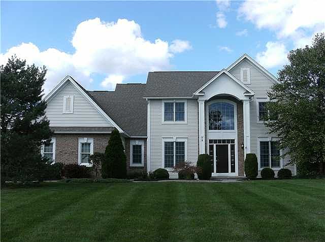 Beautiful Custom Crosstown built home on neighborhood street with cul de sac. Open two story foyer with arched window. Fantastic detailing such as hardwood floors and hardwood stairs to 2nd floor, ceramic tile foyer, crown molding, open kitchen with large island, Anderson Windows, 1st laundry hook up plus convenient 2nd floor laundry room and gas fireplace with mantel. Fantastic cathedral ceilings in large master bedroom with double doors and spacious master bath with whirlpool tub. Sliding glass door off dinette to large Trex deck. Beautiful wooded lot.