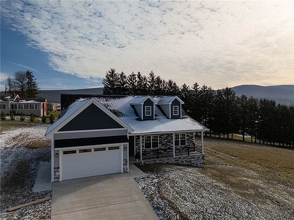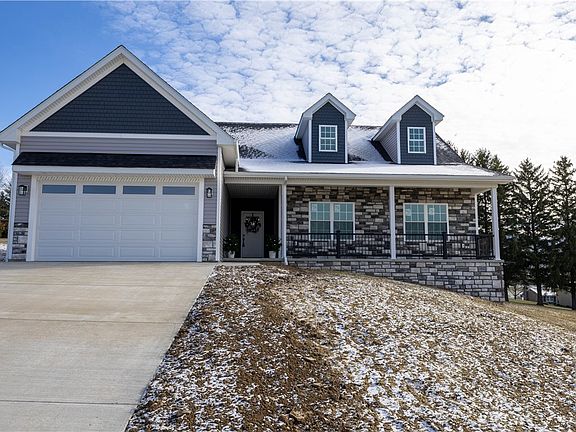 BEAUTIFUL BRAND NEW BUILD NOW AVAILABLE! This 3 bed 2 full bath single level living Ranch home offers tastefully appointed modern living with an open concept first level including 9-foot ceilings throughout and 12' ceilings in living room! The developers were mindful of the incredible views when designing the home atop Baron Court! Host special occasions in your spacious kitchen, showing off your new quartz countertops, huge pantry and oversized island for extra space for preparing those wonderful meals! Enjoy cozy cool evenings by the ceiling stone gas fireplace or relax on the covered back patio and listen to the peep frogs on a warm summer night! The primary suite offers full custom bath with double vanity, hexagon tile shower, and W/in closet! You will be able to finish the full basement as desired, potentially in-law suite and is plumbed for full bathroom and additional drains for kitchenette if desired. Or simply finish as game room or great room for entertaining!