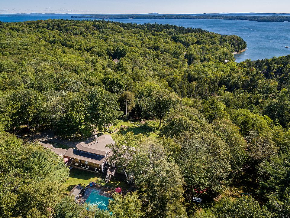 This exceptional private one-of-a-kind estate overlooking Penobscot Bay blends natural materials and custom architecture throughout. Massive tree trunk timbers and exposed supporting beams rise to meet curved archways, while custom cherry, rosewood, maple and oak flooring showcase the exquisite craftsmanship throughout this magnificent home. Floor to ceiling windows reaching 26 feet high and a granite fireplace, frame dazzling ocean views. The chef's dream kitchen, with a walk-in pantry, is perfect for entertaining, and opens to a wrap-around deck overlooking the bay. Your private compound awaits with family friendly resort style amenities such as an in-law apartment with kitchen, game room, in-ground heated swimming pool, hot tub, outdoor shower, manicured grounds, outdoor fire pit, two swing sets, tether ball court, sandbox, and putting green. With unparalleled views and an exceptional rental history this property is a rare investment opportunity which blends luxury, comfort and natural beauty.