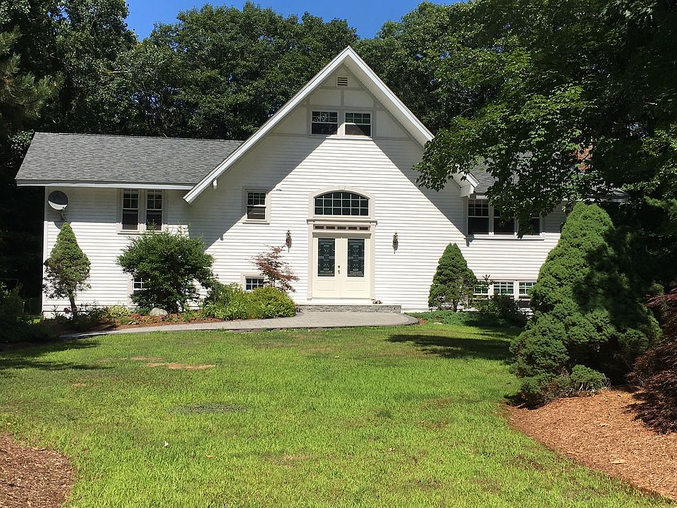 FOR SALE BY OWNER…………...Situated in a desirable area with properties valued over $1 Million, this beautiful contemporary A-framed ranch styled home is in one of Sharon highly sought after and child safe family neighborhoods. It boasts peaceful landscaping, wide roads and roomy sidewalks for children and family to bike and stroll. While located in a quaint neighborhood, this property is within 10 minutes drive to schools, major highways, shopping, town center, Borderland State Park, and Sharon commuter rail. With a total of 2475 sq ft living space including a finished basement, this home features 4 bedrooms 2.5 baths and two car garage. Stunning high ceiling entry hallway leads up to a spacious family room with fireplace and hardwood floor throughout open to the airy dining room. Oversize and serene back deck overlooked a large private yard filled with mature trees, great for entertaining. This home also offers spacious eat-in kitchen equipped with granite countertops, solid wood cabinets and tile flooring. Three ample sized bedrooms located on the first floor and the master suite with newly renovated full bath on the second floor. Lower basement level included a well-organized laundry room and half bath, a sizeable game/playroom, and a bonus room that can be used as office space or additional guest room.