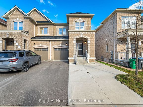 Welcome to this bright and spacious 3-bedroom semi-detached home in highly sought-after Northwest Brampton, showcasing over $45,000 in premium upgrades (see attached list). Featuring no sidewalk and an extended driveway, this property offers exceptional curb appeal and convenience. A builder-installed separate entrance to the basement and 9 ft ceilings on both the main and second floors (A rare feature for semis) add tremendous value and versatility. The main floor impresses with gleaming hardwood, a striking black-and-white custom wooden staircase, smooth 9 ft ceilings, and an upgraded powder room. The open-concept family room provides the perfect space to relax or entertain, complete with a modern electric fireplace. The beautifully upgraded kitchen and dining area feature a wall-mounted range hood, quartz countertops with a breakfast bar, stylish marble backsplash, and a water filtration system, with a walkout to the spacious, fenced backyard. Enjoy summer gatherings on the large patio with gazebo, ideal for outdoor living. Upstairs, the second floor also offers 9 ft ceilings and a generous layout. The expansive primary bedroom includes a luxurious upgraded 5-piece ensuite and a newly customized, fully shelved walk-in closet. Two additional well-sized bedrooms, a modern 4-piece bathroom, and a convenient laundry room complete the upper level. The unfinished basement, featuring a bathroom rough-in and a separate entrance, is ready for you to design your ideal space or create a potential income-generating basement apartment. Located close to Hwy 410, parks, trails, public transit, schools, libraries, and recreation centers, this home combines comfort, convenience, and future potential. Don't miss this opportunity & show with confidence!