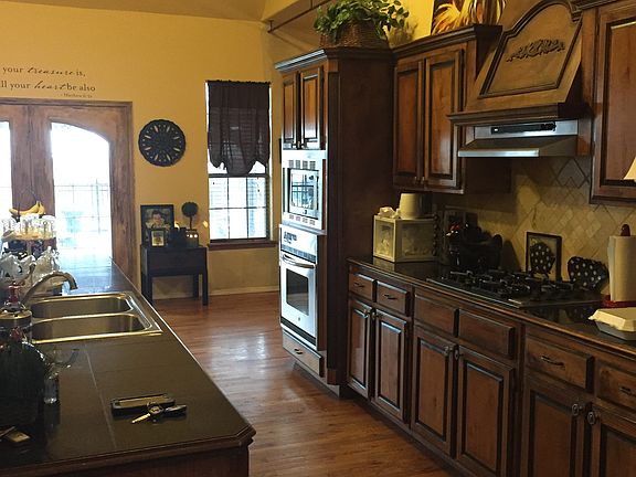 Beautifully landscaped, 4 bedroom, 3 bath, 3 car garage home on large, fenced, one acre lot. Vaulted ceilings in grand room with an open concept. Formal dining room and living room, office with built ins, breakfast nook. Upstairs has in-law suite with huge living area for kids or living area and hobby area. Beautiful country view overlooking 18'x 32' pool. Pool is enclosed in a wrought iron fence. New pool liner has just been installed. Home has a cellar, three car garage, garden area and gazebo overlooking pool. Hardwoods downstairs has been refinished and hardwoods added in the upstairs living area. New carpet in every bedroom. Home has two living areas downstairs, with master suite down and two additional bedrooms and full bath downstairs. Great floor plan and great neighborhood. Walking distance to school and new Southwest park. Home has 2X6 exterior framing and geo-thermal heat/air. Currently installing new baseboards in living areas. We will be listing this home in the next couple of weeks so call now for a great deal. Call to see. (580) 235-5810