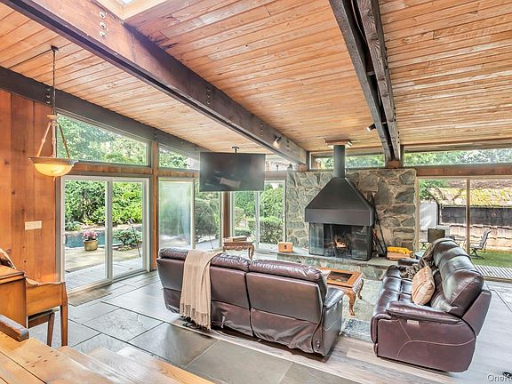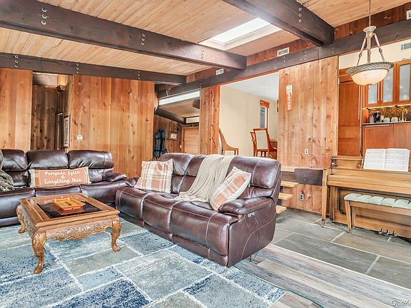 Life's Finer Moments Can Have no more appropriate setting than this handsome home. Offering Gourmet Eat in Kitchen with granite counter tops, Great Room with Fireplace and Walls of Glass overlooking the most beautiful yard and Lagoon Pool. Primary Suite with Primary Bath, Walk in Closet and Sliders to deck and yard, 2 Additional Bedrooms, Hall Full Bath with Jacuzzi Tub, Powder Room and Wet Bar off the Great Room. Full Finished Basement with Den, Playroom, Office, Storage, Laundry Room, Utility Room and So Much More. Magnificent Yard includes, Patio, In Ground Gunite Lagoon Pool, Fish Pond, Tennis/Pickle Ball? Basket Ball Court with Lights, Yard, Gazebo, Shed and One Car Garage and plenty of parking. A Unique Find at a Fabulous Price!!