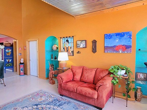 One-of-a-kind artist’s home at the base of the Burro Mountains, perfectly sited on over 10 stunning acres with views in every direction. This colorful and creatively inspired 3 BD, 2 BA home includes vibrant finishes, custom shelving, French doors, and artistic details throughout. The spacious main-floor bedroom opens to a peaceful courtyard, while the upstairs primary suite features a private balcony and direct access to a spectacular loft studio or office. A fourth room without a closet offers flexible space for a guest room, studio, or office. Enjoy outdoor living on the beautiful patio under endless skies. The property includes a new, fully wired shop, carport, a storage shed, and a brand-new septic system (2025). Located at the end of the road for privacy and seclusion, very close to an easement allowing access to nearby Gila National Forest lands. Approx. 20 miles from Silver City. Seller is related to broker.