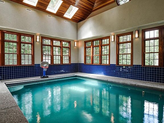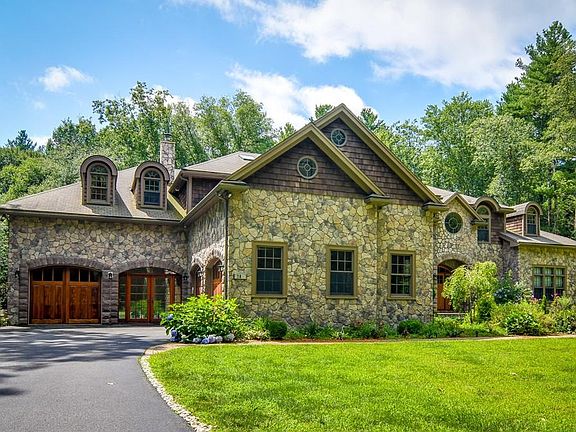 Custom designed/built home. Easy access on Needham/Wellesley side. Striking natural stone and shingle exterior. 14 spacious rooms, high ceilings, hardwood floors thruout. 5 bedrooms with ensuite baths. 5 full and 2 half baths. Indoor heated swimming pool w/ washer/dryer and cathedral ceiling, Open floor plan with perfect function and utility. Formal living room with fireplace. Formal open Dining room adjacent to 2 kitchens, two sets of ss appliances, granite countertops large breakfast area plus centre island. All open to fireplace family room and 4 season heated/cooled sunroom. 2 story open cathedral ceiling foyer plus second rear staircase. Spacious master suite w/ FP, opening to balcony also sitting area, home office and truly spacious and functional his/hers walk in closets! Three additional en suite bedrooms plus exercise room and second floor laundry room. 3rd floor finished bonus room! 5th bedroom is located privately on first floor. 8 heating/cooling zones. 3 car garage!