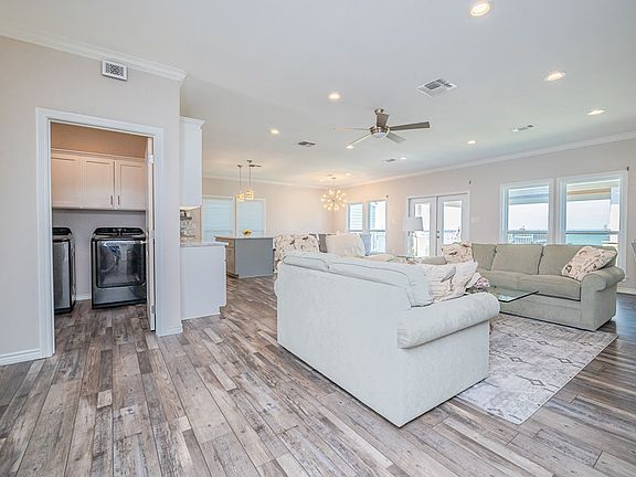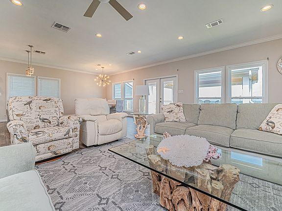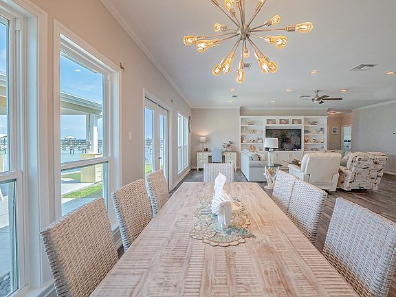 Pristine coastal home located on the famous Copano Bay! Enjoy SPECTACULAR SUNSETS, nightly under your spacious cabana. 3 Bed 2 Bath (1905 sq ft), plus private access 1 Bed 1 Bath (351 sq ft) Mother in Law Suite, all under one roof. The main living space showcases Luxury Laminate flooring & Tile throughout, water views, & an open concept living space. The kitchen features stainless appliances, an island, granite countertops, and wine bar. Owner Suite with walk-in closet private bathroom with dual sinks and tiled shower. Split bedrooms. Mother Inlaw Suite with private access from the side of the home with covered walkway. MIL Suite features kitchen, stainless steel appliances, dining space and separate room. Overall the home is beautifully appointed with a coastal color palette and decor. Perfect for family gatherings and entertaining. Great fishing on your private 318' lighted Pier with 10' x 30' T-head. This is a FISHERMAN'S DREAM!! MUST SEE!!! City water & sewer.