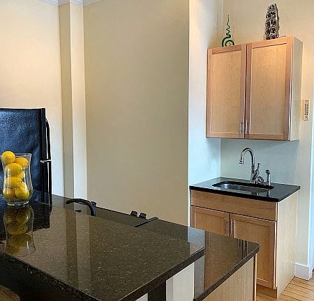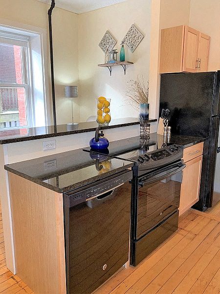 Modern one bedroom unit on the first floor, located right where the Old Port meets the West End. The kitchen is open to the living area, with a granite breakfast bar. This unit has beautiful hardwood flooring, custom cabinets, granite countertops, & modern appliances, including a dishwasher! Bathroom has updated fixtures, tile flooring, a stand-up shower, & a combo washer/dryer! The bedroom is large & boasts a decorative fireplace & lots of windows. There is also a PRIVATE DECK for you to take in Portland's sea breeze!