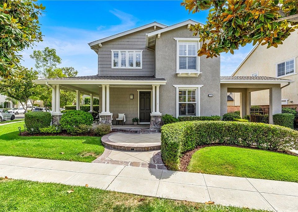 Enjoy the Ladera Ranch lifestyle in this Traditional Craftsman home, located on a unique 6,500 sq. ft. lot in Oak Knoll Village - walking distance to some of the community’s most popular amenities. Exceptionally cared for, this residence features 3 bedrooms, 2.5 bathrooms, and a versatile 4th room: main-floor flex room - perfect as a home office, guest area, or additional family space. This 6,500 sq. ft. corner lot offers privacy, multiple outdoor spaces, and the potential for future additions, with plans outlining options to add just over 800 sq. ft. of living space. Exterior highlights include a welcoming wraparound porch - overlooking a front yard that extends around the side of the home, plus an extra-long driveway with a gated porte-cochere that doubles as secure additional outdoor space, and a low maintenance backyard featuring a built-in BBQ island, turf and privacy hedges. With three access points from the main living area, the indoor-outdoor flow is seamless. Interior finishes include wood floors, new carpet, fresh paint and premium window treatments including: Hunter Douglas Plantation Shutters and Honeycomb Shades. The kitchen provides generous cabinet space, a central island with seating, and under-cabinet lighting. All three bedrooms, along with a laundry room are situated upstairs. The primary suite features a walk-in closet with a custom California Closet system and a true master bathroom with dual vanities, a make-up station, private washroom, and separate tub and shower. The secondary bedrooms, also with built-in closet systems, share a beautifully remodeled Jack and Jill bathroom with quartz counters, a hexagon tile backsplash, new dual vanity, and a new tub with tiled shower. All bathroom fixtures, faucets and appliances are Kohler. Systems Updates include: whole house repipe (copper), tankless water heater, and all electrical outlets updated throughout the home. Best of all is how many amenities are within easy walking distance from this home including: Oak Knoll Clubhouse with 2 pools, a splashpad, and multiple outdoor entertaining areas (recently renovated), Dawnwood Park, Cox Sports Park, Scenic Trails, and the Community Farm (in development). With access to top-rated schools, unmatched amenities, and many annual community events you'll love life in Ladera Ranch. HOA Dues include high speed internet.