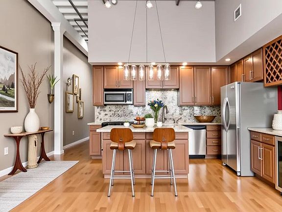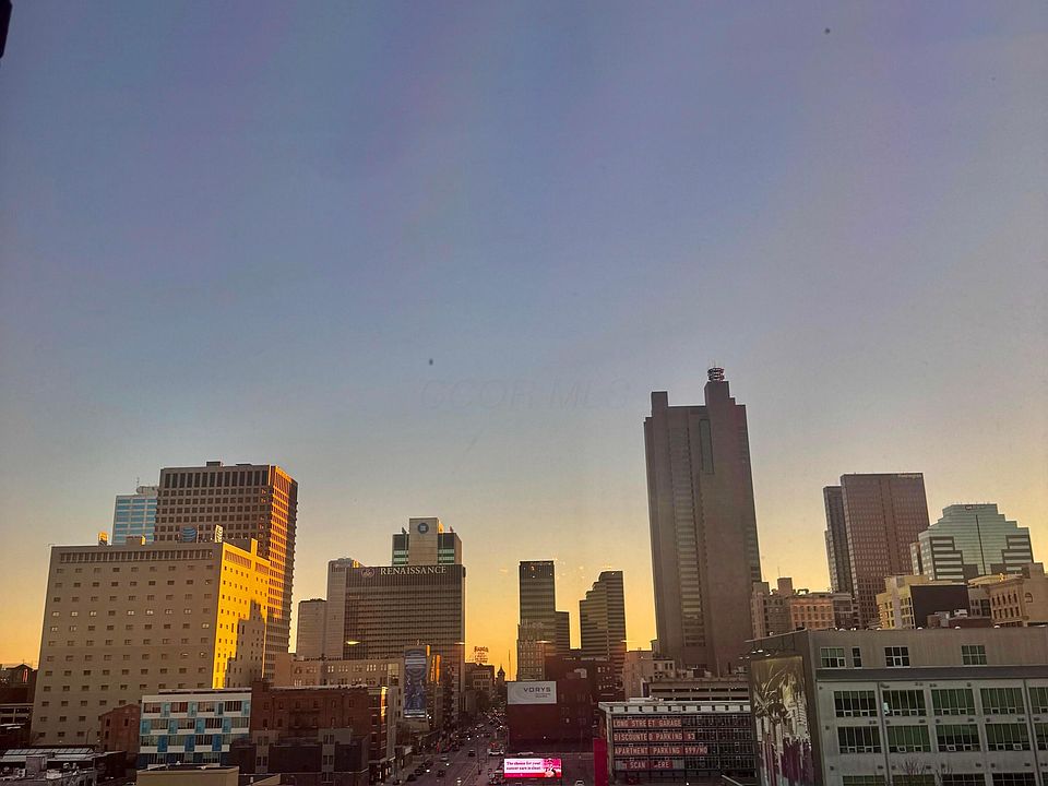 Spectacular TOP FLOOR Downtown condo featuring a large skylight that fills the open living space with abundant natural light. Exposed wood beams and hardwood floors create a sophisticated, urban feel. Located just steps from the Short North, North Market, the Arena District, countless downtown amenities, and less than a block from Nationwide. The spacious bedroom includes a walk-in closet and an attached ceramic-tile bathroom. An additional full bath offers a tub and pedestal sink. The open kitchen features a large island perfect for gathering with friends and family, along with a generous pantry and dining area that accommodates a large table. Be sure to enjoy the rooftop deck, fitness room, community meeting space, storage room, and two parking spaces. Who wouldn't love coming home after a long day to a stunning sunset glowing between the high-rises? Schedule your showing today before it's to late .