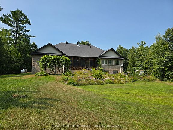 Distinctive custom all stone 4 bedroom bungalow on aprx 1 acre landscape lot in desirable Cotnam Island, Pembroke, with additional feature of a 2 bedroom In-Law Suite. Impressive entry hall welcomes you into this spacious home with aprx 5200 sq feet of living space, this custom home boast large, bright open concept living space with 9 ft ceilings, and high end finishes. Enjoy the ambiance of the 4 sided gas fireplace, accenting living & dining rooms area which open up to a well appointed kitchen with walkout to the screened-in expansive back porch overlooking the landscaped private yard with shed and greenhouse. The large sit in kitchen is equipped with custom cabinets, desk, high end appliances including induction cooktop with downdraft fan, wine fridge & sit at bar. Adjacent to the kitchen is a small den/office, plus main floor laundry room with counter & sink, plus linen closet. The main floor Primary bedroom also opens onto the back screened-in deck, has a walk-in closet and large ensuite bathroom with jetted tub, walk-in shower & heated floor & towel rack. Down the hall, 2 other main floor bedrooms share a 3 piece 'Jack & Jill' washroom. The fully finished lower level basement reveals a large recreation room with a wet bar, in-floor radiant heat, 3 piece bathroom, a 4th bedroom and large storage room. A little further down the hall, access to a 2 bedroom 'In Law Suite' with kitchen/living room, 3 piece bathroom, and a separate outdoor private entrance, which makes this an ideal 'multi generational' home. The double garage & driveway can accommodate 10 + vehicles. Don't let this gem get away, book your showing today.