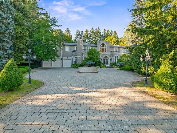 One-Of-A-Kind Neoclassical Residence On Estate-Like Grounds In Coveted Thornhill Village. Custom European-Inspired Interiors Showcasing Impressive Craftsmanship & Pride Of Ownership. Upon Entry, A Regal Rotunda With Double-Height Ceilings, Ornate Handpainted Baroque Murals, Circular Staircase, Mezzanine Overlook & Soaring Arched Windows Framing The Stunning Rear Gardens. Elegant Living Room & Formal Dining Room W/ Wood-Burning Fireplaces. Light-Filled Kitchen W/ Vaulted Glass Ceiling, Walk-Out To Terrace & Expansive Breakfast Area. Family Room Featuring Floor-to-Ceiling Windows, Walk Out To Backyard & Wood-Burning Fireplace W/ Custom Art Deco Mantel. Vast Primary Suite Features 2 Walk-In Closets & 6-Piece Ensuite W/ Jet Tub. Second & Third Bedroom W/ Walk-In Closet & 4-Piece Ensuite. Fourth & Fifth Bedroom W/ Double Closet & 4-Piece Semi-Ensuite. Lower Level Presents Entertainment Room W/ Wet Bar, Wood-Burning Fireplace, Walk-Up To Backyard, Home Cinema, Fitness Room, Nanny Suite, Cedar Sauna & 2 Full Baths. Spectacular Backyard Retreat W/ Tree-Lined Privacy, Outdoor Pool, Terraced Courtyard, Barbecue-Ready Patio & Professional Landscaping. Stately Wrought-Iron Gated Entrance, Circular Driveway & Sprawling Wooded Lawn. Superb Location In One Of Thornhills Most Exclusive Neighbourhoods. Minutes To Top-Rated Public & Private Schools, Canadas Finest Private Golf Clubs, Parks, Shops, Restaurants & Public Transit.