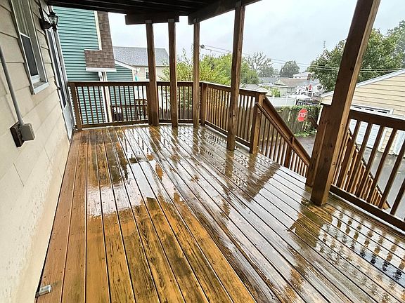 Freshly painted first floor apartment. 3 bedroom, 1 bath. Hardwood floors in bedrooms. Walking distance to water/Water views. Private covered deck. Off street parking available. Washer/Dryer hook up in basement. Available storage space in basement with private secure entrance. Partially fenced in yard.