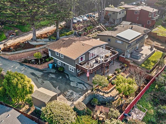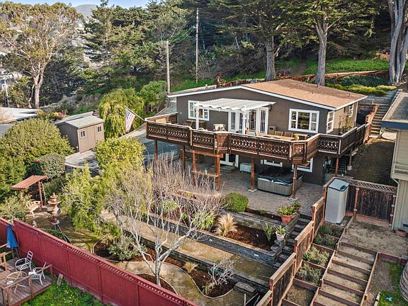 Enjoy spectacular sun sets from this beautiful custom-built home. See the whales migrate while enjoying your morning coffee on your expansive deck. This home features 4 bedrooms and 3 full baths which includes a full bath and bedroom downstairs. The kitchen features zebra wood cabinets, a Sub Zero refrigerator, a GE Monogram range, a Miele Dishwasher, farm sink and more. All custom built cabinets in the kitchen, living room and family room. Large laundry room and office downstairs too, perfect for working from home. Decorator colors and plenty of storage add to the comfort and livability in this special home. Must see all of the fine details to appreciate this coastal community property. Plenty of space for an accessory dwelling unit or RV parking. Close to shopping, public pool and tennis courts, golf, beach, hiking trails and easy access to SF, SFO and Silicon Valley.