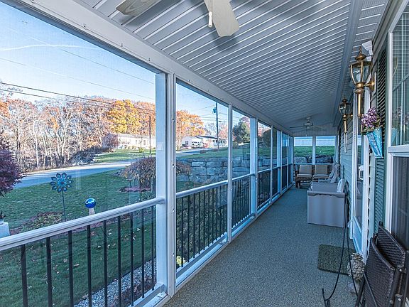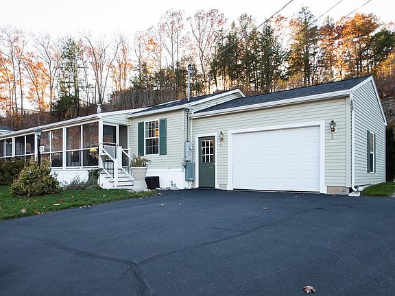 Looking for comfortable 55+ living in Southern NH. Welcome to this well cared for home with an inviting screened front porch, where you can sit in the evening and greet your neighbors, upgraded features on porch include ceiling fans and cable hook ups. As you enter the house from the porch you are welcomed into the spacious and cozy living room area with all natural lightening which leads directly into dining room with gleaming hard wood floors and slider door for back yard views. The galley style kitchen has an abundance of upgraded cabinets with pullout drawers, spice rack. Rounding out this area is a 13 x 9 den/sitting room. The primary bedroom has a walk in closet and attached bathroom with walk in shower. The second bedroom with another walk in closet has views of the private landscaped back yard and unique natural granite wall. The garage is upgraded with larger door and has plenty of storage. The back yard houses a shed, deck and is beautifully landscaped. In addition, this home is equipped with a full on demand generator. Open House this Saturday 12/17/2023 11-1 or call for a showing. Sorry no dogs allowed.