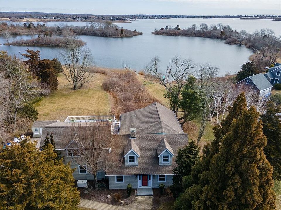 Stunning waterviews abound from this charming gem in the coveted seaside community of Arnolda Colony. The association offers a private beach, docking , tennis/pickle ball , & community activities. This light filled renovated home w/ attached 2 car garage, has 4 bedrooms & 3 1/2 baths. Windows frame the view of Ninigret Pond from most everywhere you look. Graciously sized rooms and a fluid floor plan are designed with comfortable living and entertainment in mind. The family room has a fieldstone fireplace, beamed ceilings, and hardwood floors & opens to the Living Room. Dining room seats 12 & the custom kitchen includes a pantry, a center island, granite counters , stainless appliances as well as sliders leading to the back deck. A bedroom and bathroom as well as a laundry room, complete the first floor. The second floor offers a primary bedroom suite , 2 other bedrooms, an office, and a full bath. The upper deck boasts an awning where you can enjoy shade or sun. Imagine hanging out there watching the wildlife. Pond access is steps from the house using of one of four association rights-of-way where dock space is available to residents. This property is a must see for water enthusiast including activities such as boating, clamming, fishing, kayaking and much more. The location is close to town where charming eateries can be found, golf, hiking and shopping. Nestled in between Watch Hill and Newport, and only hours from NY and Boston, this spot is truly a slice of paradise.