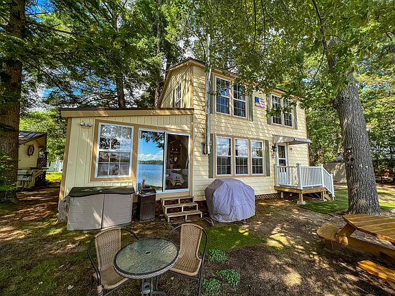 This adorable cottage on Tripp Lake offers a beautiful sandy beach, level lot, lots of glass for expansive views, cathedral pine ceilings, and 3 bedrooms. A new metal roof and vinyl siding, woodstove to extend the season, year round access, dock system, large shed for all your water toys and much more! Being sold fully furnished. Great lake to swim, boat, fish, and enjoy!