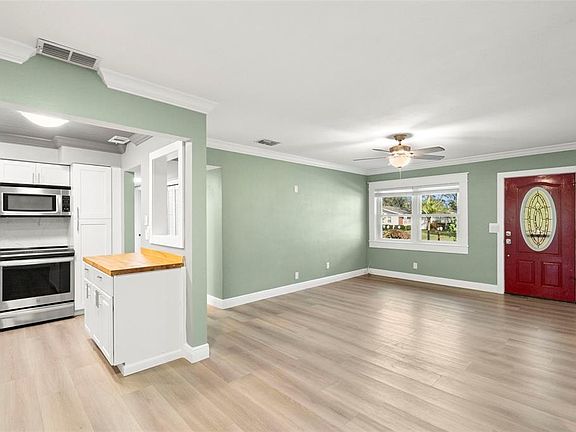 Beautifully updated 4BR/2BA pool home in desirable Dunedin. This spacious property features a fully accessible ensuite master shower, upgraded kitchen with new cabinets, countertops and appliances, updated second bath, and new luxury vinyl flooring in the master, kitchen, dining and living areas. Enjoy Florida living with a newly renovated sparkling salt water pool with pebbletec finish and new deck pavers, screened porch with spa, fully fenced yard, outdoor storage shed and a 1-car garage with additional driveway parking. Owner covers pool maintenance; tenant pays utilities and lawn care. Up to two pets allowed with deposit. Breed restrictions apply. Minutes to downtown Dunedin, the Pinellas Trail, beaches and top local amenities. Contact listing agent directly for showings. Individual application fee is $53.
