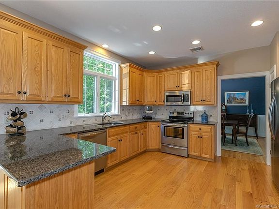 Drive the beautiful Maple Valley neighborhood, and walk through the front door of this gorgeous Colonial! You will know you are home! Two story foyer with soaring staircase and chandelier leads to the Kitchen and Family Room area, truly the heart of this home! The highly functioning Kitchen features beautiful granite countertops, stainless appliances, and offers a ton of counter space. The kitchen includes gorgeous eat in area with a wall of windows and slider to the paver patio. Off the kitchen is a highly functional drop zone/mudroom. The family room opens to a 3-season porch that overlooks the Tennis Court and large patio.Upstairs the master features a private balcony with French Doors, walk in closets and a bath with jetted tub. Bedrooms have hardwood floors. The bonus room could easily be a fourth bedroom. The laundry is on the 2nd floor along with a full bath. From the gorgeously landscaped patio area is the Har-Tru Clay Tennis Court. If your kids dont play tennis now, they probably will! (You could turn the court back to lawn area, there is no asphalt here) And on the other side of the house is a full size Half Basketball Court! This paved area is also great as a safe place for kids of all ages to play and ride their bikes, trikes and plastic cars! No need to leave home! Home borders Bolton Land Trust and you can walk from the home to the Hop River Rail Trail! See it today! Masks required for all showings, 2 buyers and agent only.