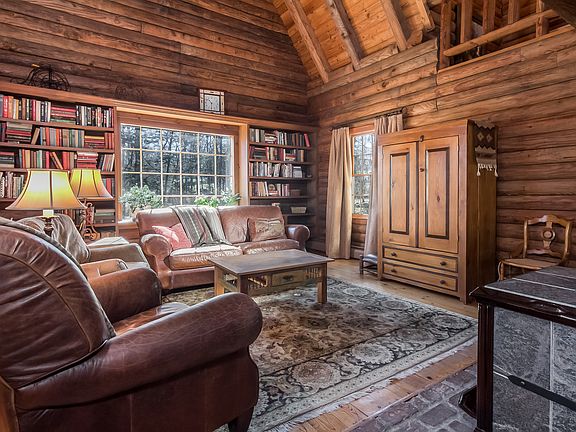 Rustic Elegance with a lodge feel is yours in this stunning log home. The great room draws you in with wood burning stove, vaulted ceilings and a wall of built-ins. The custom designed kitchen, featured in Kitchen Magazine, will turn anyone into an aspiring chef with its Copper range hood, copper farmhouse sink, gorgeous granite and other details. And warmer weather can't get here soon enough so you can fully appreciate the two "sit-a-spell" Trex decks, stone patio and the vibrant landscaping. All of these create a gratifying park-like setting that welcomes you as soon as you pull into the driveway.