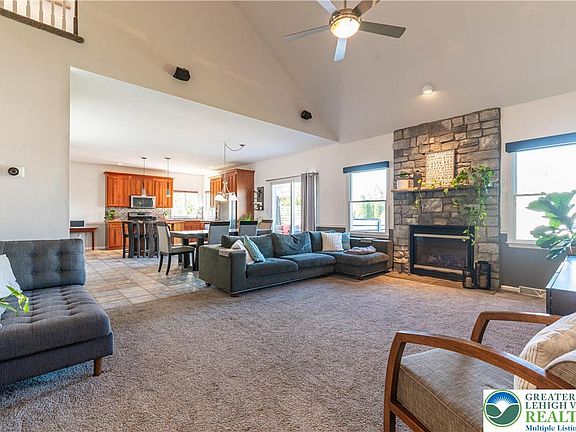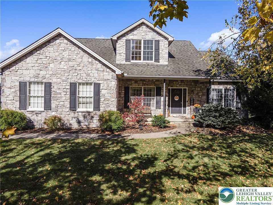 *PUBLIC OPEN HOUSE THIS SAT 10/25 FROM 12-2PM & SUN 10/26 FROM 1-3PM!* Stunning 4-bed, 3.5-bath stone Colonial situated in a quiet, well-maintained neighborhood! Bask in the bright open flr plan of the main lvl! Step into the tiled foyer leading to a den/home office feat chair rails, baseboard & crown molding, & modern barn dr. The 2-story FR impresses w/plush carpet, vaulted ceiling w/fan & breathtaking flr-to-ceiling stone-front gas fireplace w/rustic mantel & spotlights. The LG eat-in kitchen boasts tile flrs, tile backsplash, stainless stl apps, recessed lts & ctr island w/pendant lights. A pantry & dining area w/deck access complete this cozy space. The 1/2 bath feat tile flrs & vessel sink. Dbl drs lead to the 1st-flr master ste w/wood ceiling beams, wall-to-wall carpet & walk-in closet. The luxurious en-ste bath inc tile flrs, dual sinks, tiled corner jetted tub & tiled walk-in shower w/glass dr. Upstairs, 2 spacious beds w/wall-to-wall carpet share a full hall bath w/tile flrs & tub/shower combo. The finished daylight basement is an entertainer’s dream, feat laminate flrs, shiplap ceiling accents w/recessed lts, LG open rec area w/bar seating, butcher block waterfall counters & kitchenette w/stacked stone tile backsplash. An add'l bed & full bath provide comfort for visiting guests. Enjoy outdr living on the walkout Trex deck w/retractable pergola canopy & slatted privacy walls, or relax on the paver stone patio overlooking a LG yard w/panoramic views.