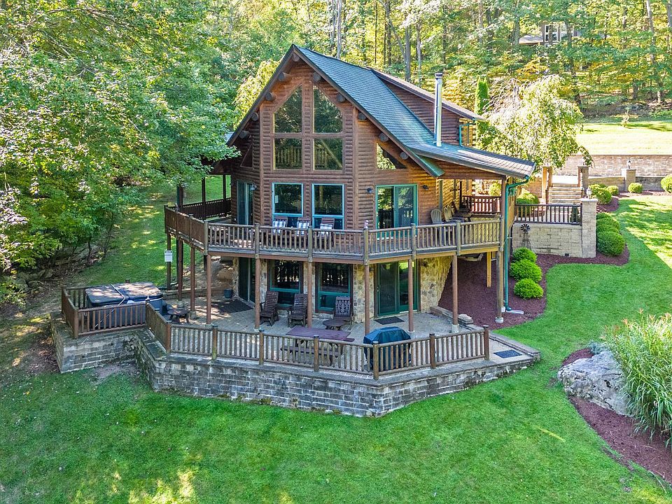 If it's privacy and convenience you want, you will love this beautiful log home on a 1.6-acre site with seasonal lake views and a path that leads to restaurants and the lake! Enjoy an open floor plan, cathedral ceilings, two fireplaces, large family/game room, hot tub, block paver landscaping and lots of space to entertain. The home also boasts many recent upgrades which include new lower-level gas fireplace, new lower-level flooring, new carpet, new deck boards and marble countertops. The Mountainside Community amenities include a lakefront clubhouse, lake access and a pavilion. The location is also just minutes to Wisp Ski Resort, call today to preview.