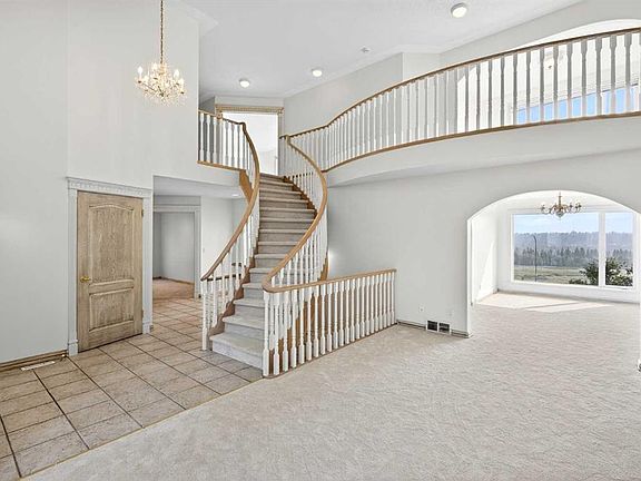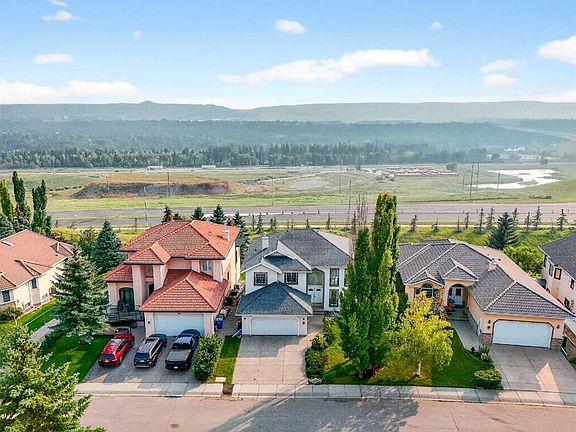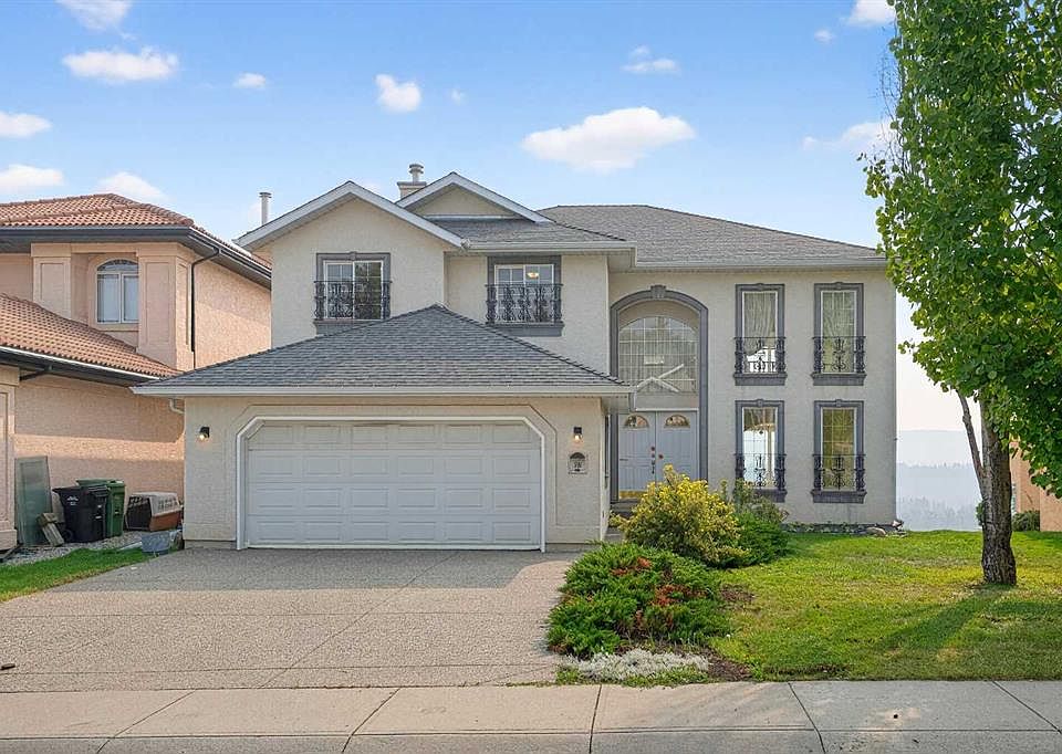 Take in the ever-changing scenery from this stunning home, offering sweeping views over the Bow River valley, lush woodlands, and extending all the way to Canada Olympic Park and the majestic Rocky Mountains. Expansive windows frame the greenery of summer, vibrant autumn colors, and snow-kissed trees in winter — a serene and picturesque backdrop visible throughout the home. Boasting over 3,420 sq.ft. of total living space, this fully finished walkout 2-storey home sits on an impressive 8,594 sq.ft. south-facing lot that welcomes abundant natural light and features a flat 4,000 sq.ft. lawn — a rare find that offers incredible potential for expansion. Set on a quiet street, the property provides 3+1 bedrooms with a thoughtfully planned layout that maximizes light, space, and the remarkable views. Brand-new carpet enhances the comfort of the main and upper levels. Step through double doors into the main floor, featuring a Grand Foyer with a spiral staircase centerpiece. 2 Storey High ceiling in Living Room that flows seamlessly into the formal Dining Room, framed by arches and picture-perfect views. The open-concept Kitchen with brand New white Cabinets and Quartz Counters, gold hardware and a peninsula island with a large eating bar set the tone. All brand new Stainless steel appliances are in this nice new kitchen. The Family Room includes a built-in bookcase and a cozy gas fireplace, with access to a spacious composite deck for enjoying the scenery and entertaining. A main-floor Den with French doors and a Powder Room complete the level. Once you step onto the upper level, with an open Loft and extensive use of Railings, overlooking the Living room. The Primary Bedroom offers the same breathtaking outlook, accompanied by a 4-piece ensuite with jetted tub, quartz countertops, and a white-and-gold design echoing the kitchen’s elegance. A Bonus Room also captures the views, while two additional bedrooms with custom closet organizers share a 4-piece bath. The fully finished walkout Basement offers a massive Recreation Room with breathtaking views, a Bedroom, and an unfinished room (~239 sq.ft) perfect for a workshop, hobby space, or additional storage. Step outside to the Covered Patio and enjoy the south-facing, landscaped backyard, complete with mature apple trees. Additional highlights include soundproof windows for ultimate peace and quiet, a double attached garage, and an exposed aggregate driveway. Newly painted baseboard and doors to give a fresh new accent. The home is also ideally located close to schools, walking paths, and playgrounds, with easy access to Crowfoot Crossing and a variety of shopping and dining options. Don’t miss this rare opportunity to own a home with stunning views and exceptional features!