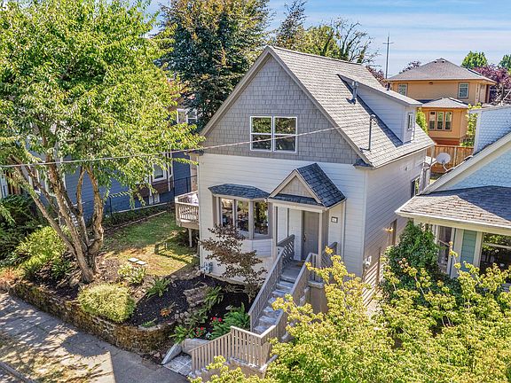 You definitely will want to see the inside of this charming, move-in ready Victorian farmhouse in one of Portland’s most vibrant neighborhoods! Your first steps into this amazing home are sure to impress with the sun-filled living room with large windows, high ceilings and beautiful Brazilian Cherry hardwoods that flow seamlessly into the dining and kitchen spaces. Just off the dining room a door opens to a sizable deck allowing for many options to enjoy and entertain. The kitchen features a beautiful garden window (more natural light!), ample countertops and cupboards along with stainless appliances including gas range. Choose to have the Primary bedroom on the main floor or one of the 2 large bedrooms upstairs. All bedrooms and the stairs feature new carpet. Both the main and upper floors feature full bathrooms with tub/shower, new flooring, pedestal sinks and mirrored cabinets. Lower level includes laundry, a workbench, large open area for storage, a workout area or the flexibility to customize to fit your needs. This home’s location puts you near local cafés, shops, restaurants and parks, with quick access to downtown and excellent bike and transit options. 93 Walk Score and 100 Bike Score. HES score=3 [Home Energy Score = 3. HES Report at https://rpt.greenbuildingregistry.com/hes/OR10241557]
