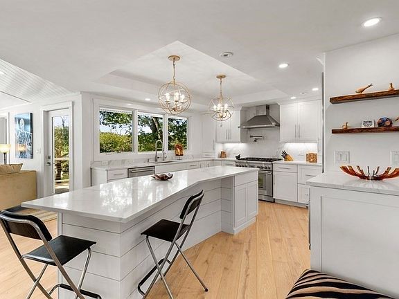 Completely renovated and redesigned waterfront Mid-century modern home on Nichols Road in Cohasset's Little Harbor. Offers direct, breathtaking waterfront views of James Island and a short stroll to Sandy Beach. Two expansive decks off the back of the house are maintenance free with cable railings, providing unrestricted west facing waterfront views and spectacular evening sunsets. Open concept floor plan with expansive windows provides maximum light throughout the home, as well as brings the beauty of the outdoors in from every angle. This home's one-of-a-kind lot is peaceful and professionally landscaped, and showcases the property's unique ledge, land and water features. Home is turnkey and ready to move in. Seller is willing to discuss selling the home furnished, with some exceptions.