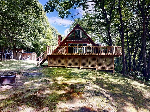 Don't miss out on this unique Maine home nestled in the woods on a private lot in Wales. Watch the beautiful wildlife from the deck. You cannot beat the LOCATION! Close to all amenities and less than 5 minutes to I95. Bonus...4.6 miles to the public boat launch on Sabattus Lake! Access to snowmobile trails right across the driveway. This chalet offers high ceilings with a cozy loft that can be used for an extra bedroom or an office space. This home also boasts custom built cabinets with live edge wood countertops to add a special touch. Enjoy wood, tile and carpet floors. Enjoy not one but TWO beautiful fireplaces on those chilly or cold winter evenings along with a very efficient woodstove. New appliances and three sheds convey with this home. It is truly a MUST SEE!