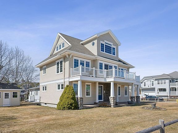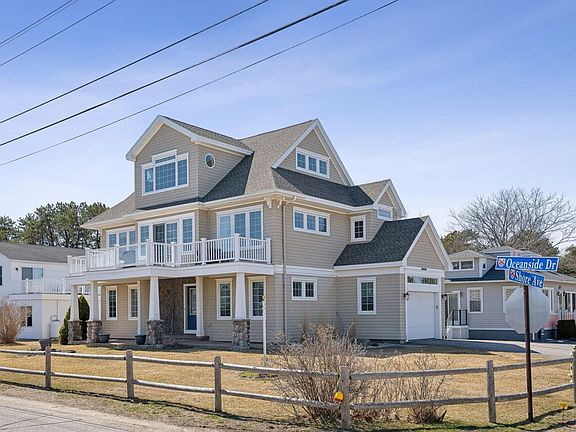 This beautifully designed 4-bedroom, 2.5-bathroom cottage-style home offers a blend of coastal charm and modern comfort. Nestled on a 0.21 acre lot, enjoy stunning ocean views and easy access to Kinney Shores beach just across the way. The first floor features three spacious bedrooms, a full bathroom, laundry room, and convenient garage access. The heart of the home is on the second floor, where you'll find an open-concept kitchen, dining area, and living room where you can enjoy the oceanside deck and take in the views. The second floor also boasts a generous primary bedroom with a luxurious full bath, walk-in closets, and a mix of tile and hardwood floors. Head up to the third floor for a versatile bonus room/office that offers additional gathering space with breathtaking ocean vistas. Located just minutes from the beauty of Ferry Beach State Park and numerous hiking trails, this home is a perfect coastal retreat with both tranquility and adventure right at your doorstep.