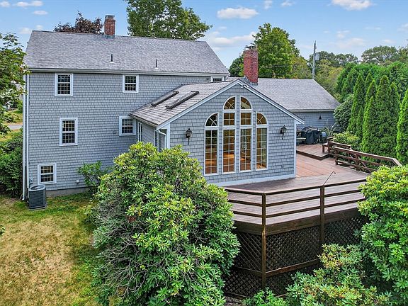This beautifully renovated "move-in-ready" classic colonial is in one of Cohasset’s most sought-after neighborhoods, just a short walk to top-rated schools, charming Cohasset Village, and the picturesque Harbor. The first floor features a sunlit, updated kitchen with new quartz counters/marble backsplash, ample cabinetry, a center island with cooktop, and a seamless flow into an inviting eat-in area with a cozy fireplace. The kitchen opens to a stunning skylit family room with soaring cathedral ceilings and direct access to an expansive wraparound deck perfect for everyday living or entertaining. Also on the main level, you'll find a spacious front-to-back living room with a second fireplace, a formal dining room, and a convenient half bath. The second floor offers four generously sized bedrooms, two beautifully renovated full bathrooms, and two walk-in storage rooms. The finished lower level provides additional living space, an attached two-car garage, and a beautiful landscaped yard.